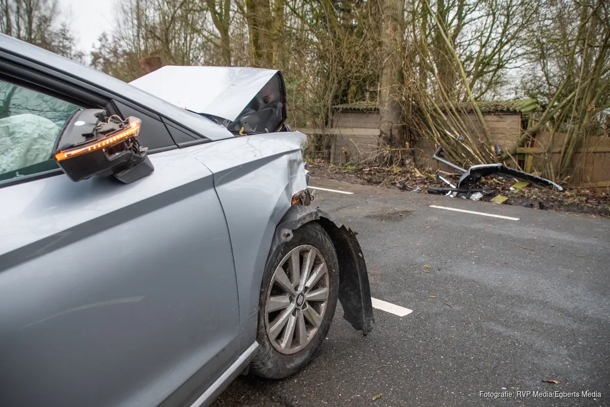De bestuurder week uit voor een tegenligger en belandde daarbij in de bosjes, waarna hij tegen een boom tot stilstand kwam. Ambulancepersoneel heeft de man nagekeken; zijn verwondingen lijken mee te vallen.