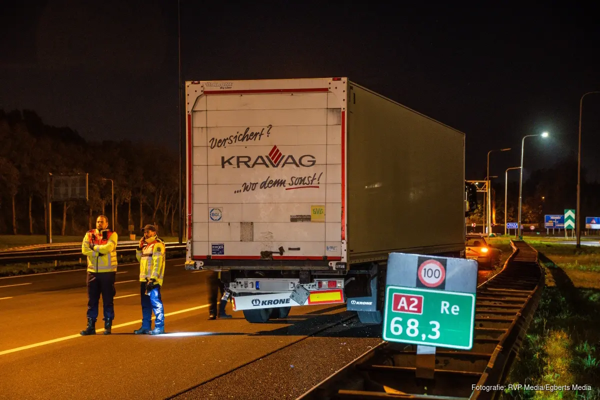 NIEUWEGEIN - Op de A2 bij Nieuwegein heeft er vrijdagnacht omstreeks 02.00 uur een ongeluk plaatsgevonden. Een automobilist knalde met een flinke snelheid achterop de trailer van een vrachtwagen.