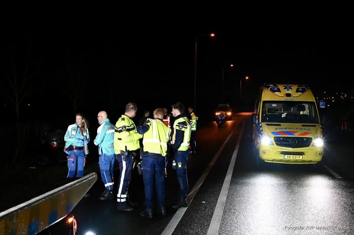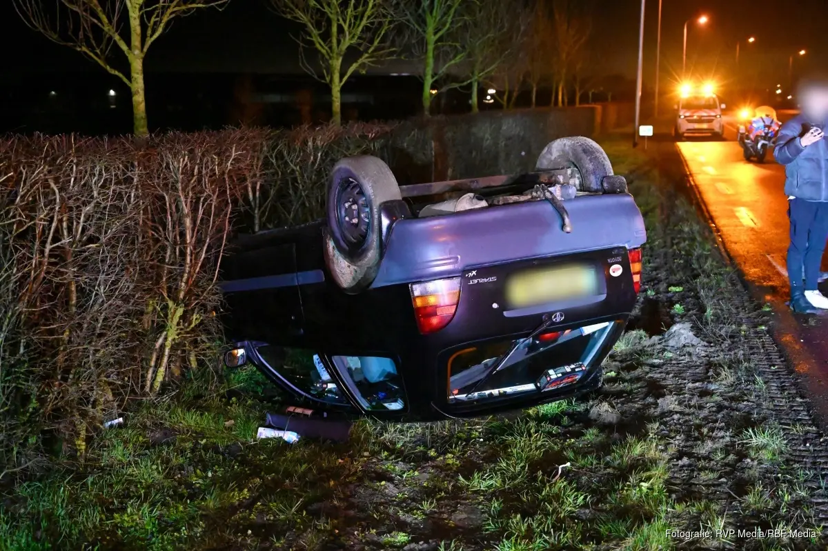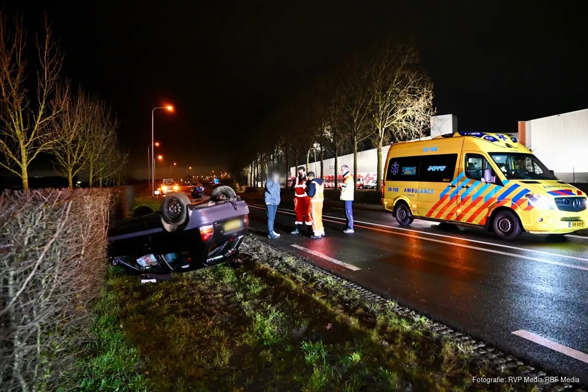 Het bleek te gaan, om een voertuig die door nog onbekende oorzaak op zijn dak terecht is gekomen. In het voertuig zaten meerdere inzittenden. Zij zijn nagekeken door het ambulancepersoneel, maar voor zover bekend hoefde er niemand mee naar het ziekenhuis. De bestuurder van het voertuig, betreft een beginnende automobilist.