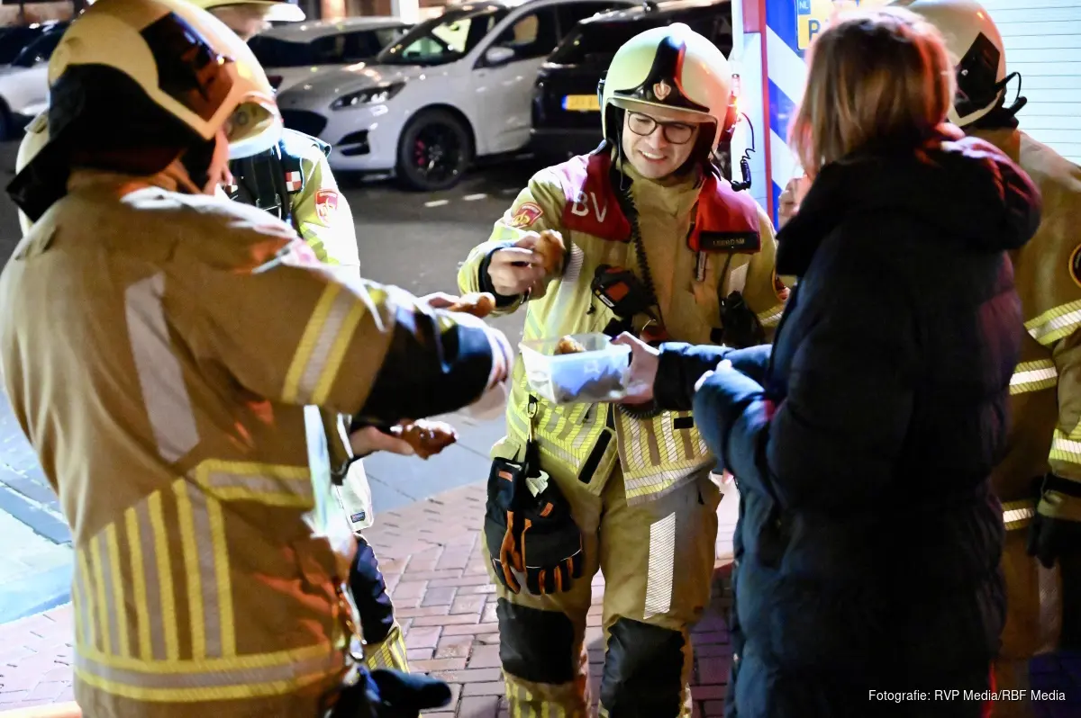Na afloop van de inzet werden de brandweerlieden verrast door een buurtbewoner, die hen trakteerde op verse oliebollen als dank voor hun inzet.