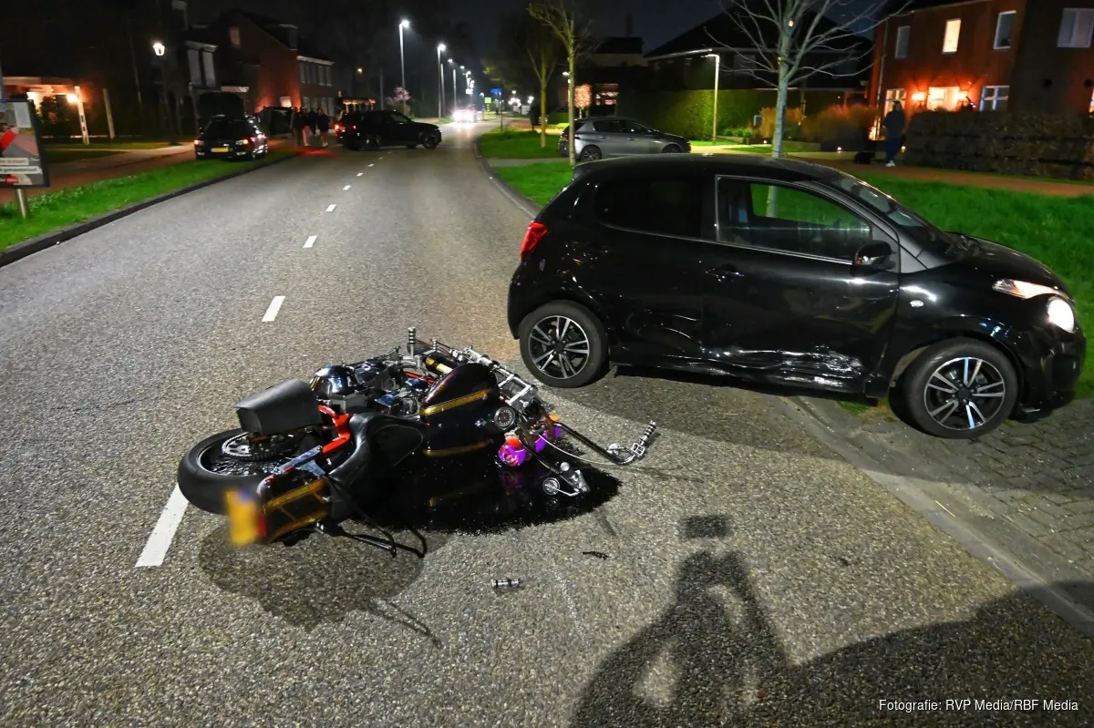 De motorrijder word meegenomen met de ambulance naar het ziekenhuis. Door het ongeval raakte de auto en de motor flink beschadigd.