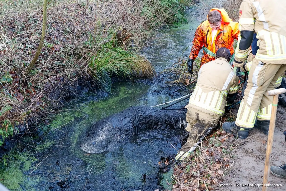 Het paard was door een hek gevallen en lag dus in de sloot. Het dier zat helemaal onder de modder en zat waarschijnlijk ook goed vast met zijn benen in de modder. De brandweer kwam ter plaatse om het dier uit de sloot te halen, met behulp van een tractor van een boer iets verderop is uiteindelijk het paard uit de sloot getrokken.