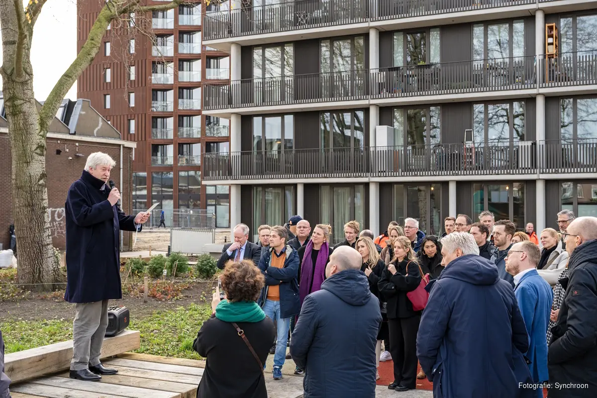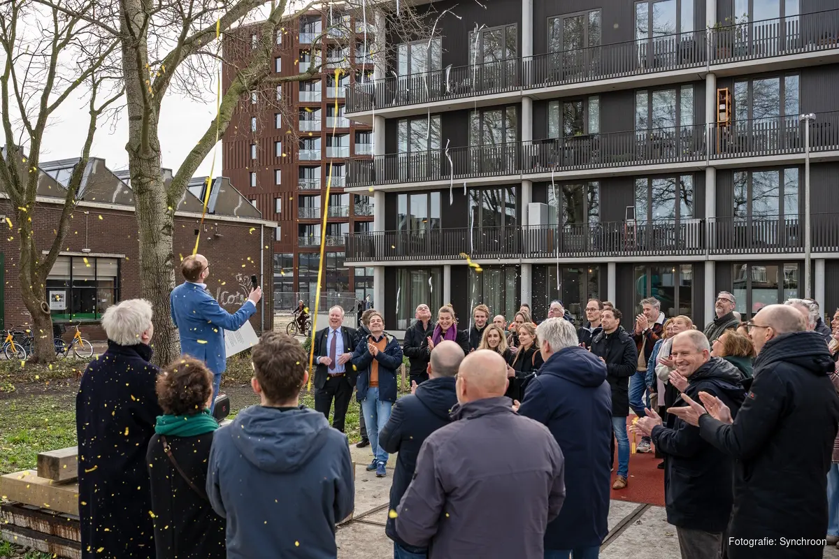 UTRECHT - Met de oplevering van 397 huurappartementen en 141 koopappartementen in Wisselspoor, markeren Synchroon en Van Wijnen een belangrijke mijlpaal in de ontwikkeling van dit nieuwe, levendige Utrechtse stadsdeel. Tijdens een feestelijk moment heeft wethouder Eerenberg in aanwezigheid van projectbetrokkenen, de laatste woningen officieel opgeleverd aan de SSH en Woonin.
