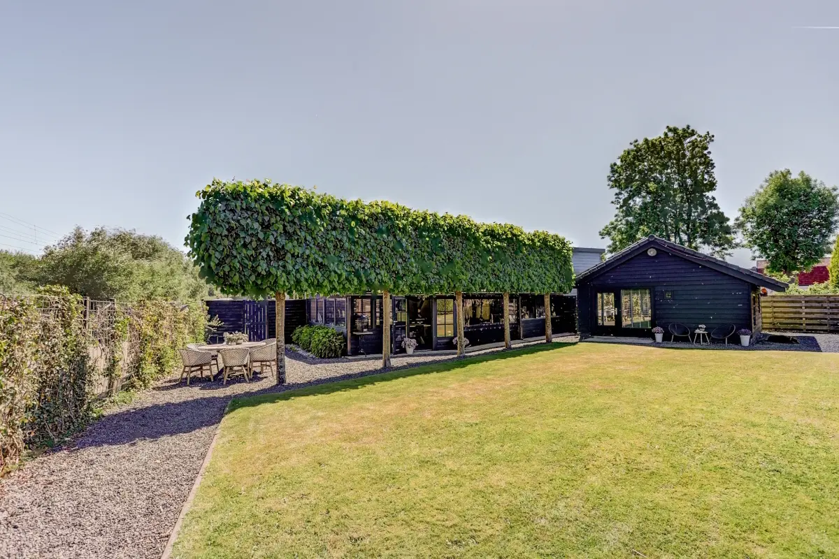 De schuur is royaal opgezet en biedt meer dan voldoende ruimte voor meerdere auto’s, een boot, aanhanger of uw volledige tuin- en hobbyuitrusting. Dankzij de hoge nok en de brede dubbele toegangsdeuren rijdt u zo naar binnen. Geen gedoe, gewoon praktisch en ruimtelijk.